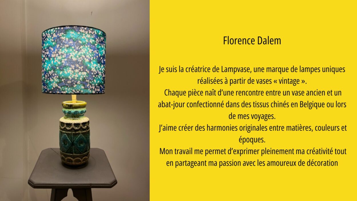 • Florence Dalem – Créatrice de Lampvase, une marque de lampes originales conçues à partir de vases vintage.