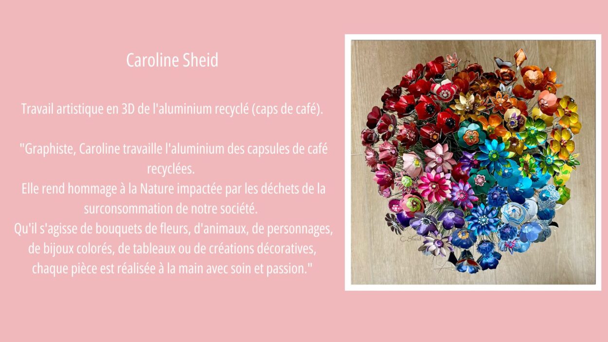 • Caroline Sheid – Graphiste, elle transforme l’aluminium des capsules de café recyclées en œuvres graphiques.