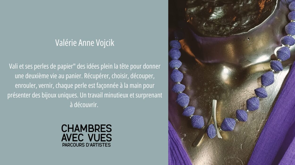• Valérie Anne Vojcik (Vali et ses perles de papier) – Elle donne une seconde vie au papier en créant des bijoux uniques, entièrement façonnés à la main.